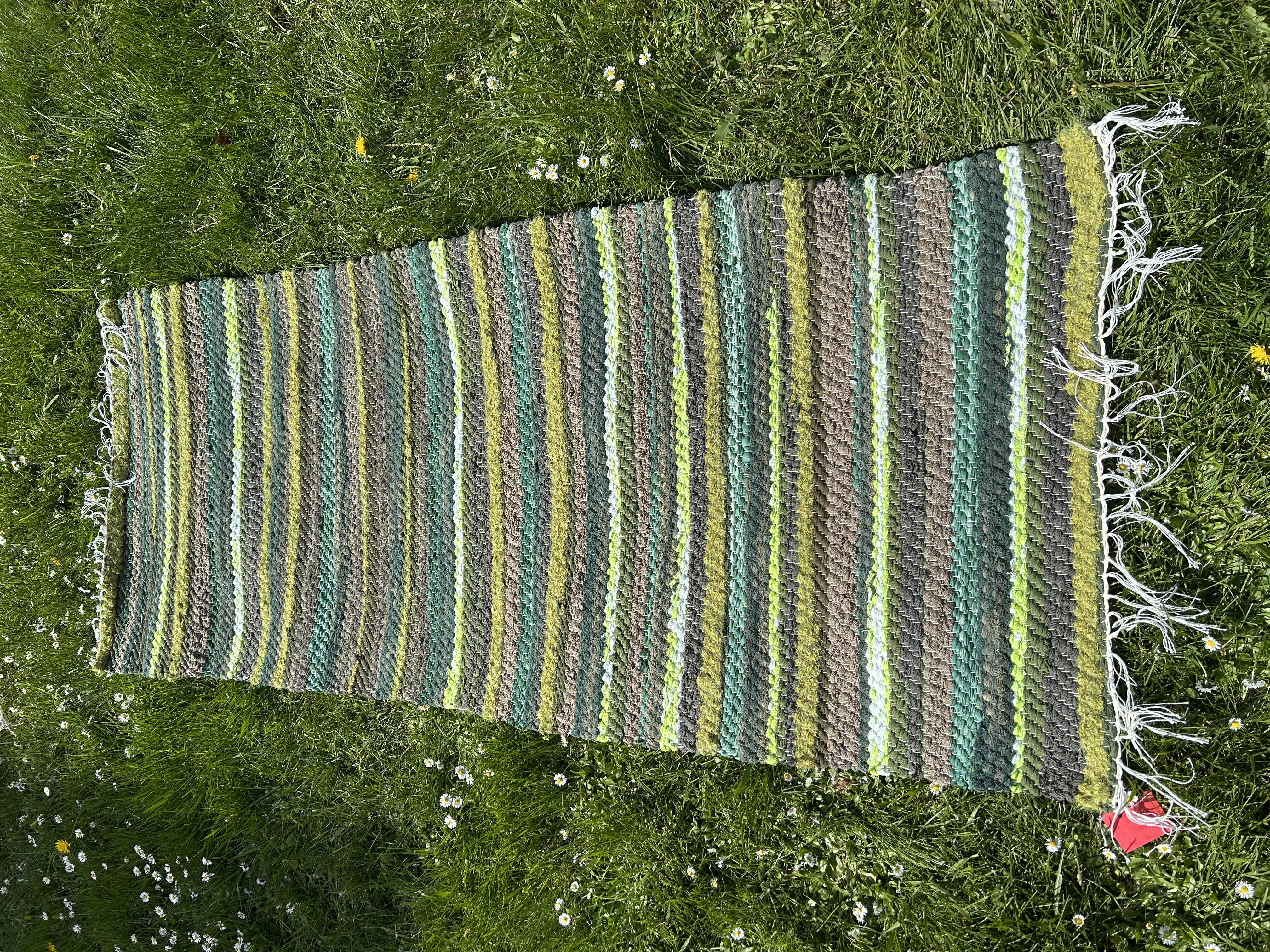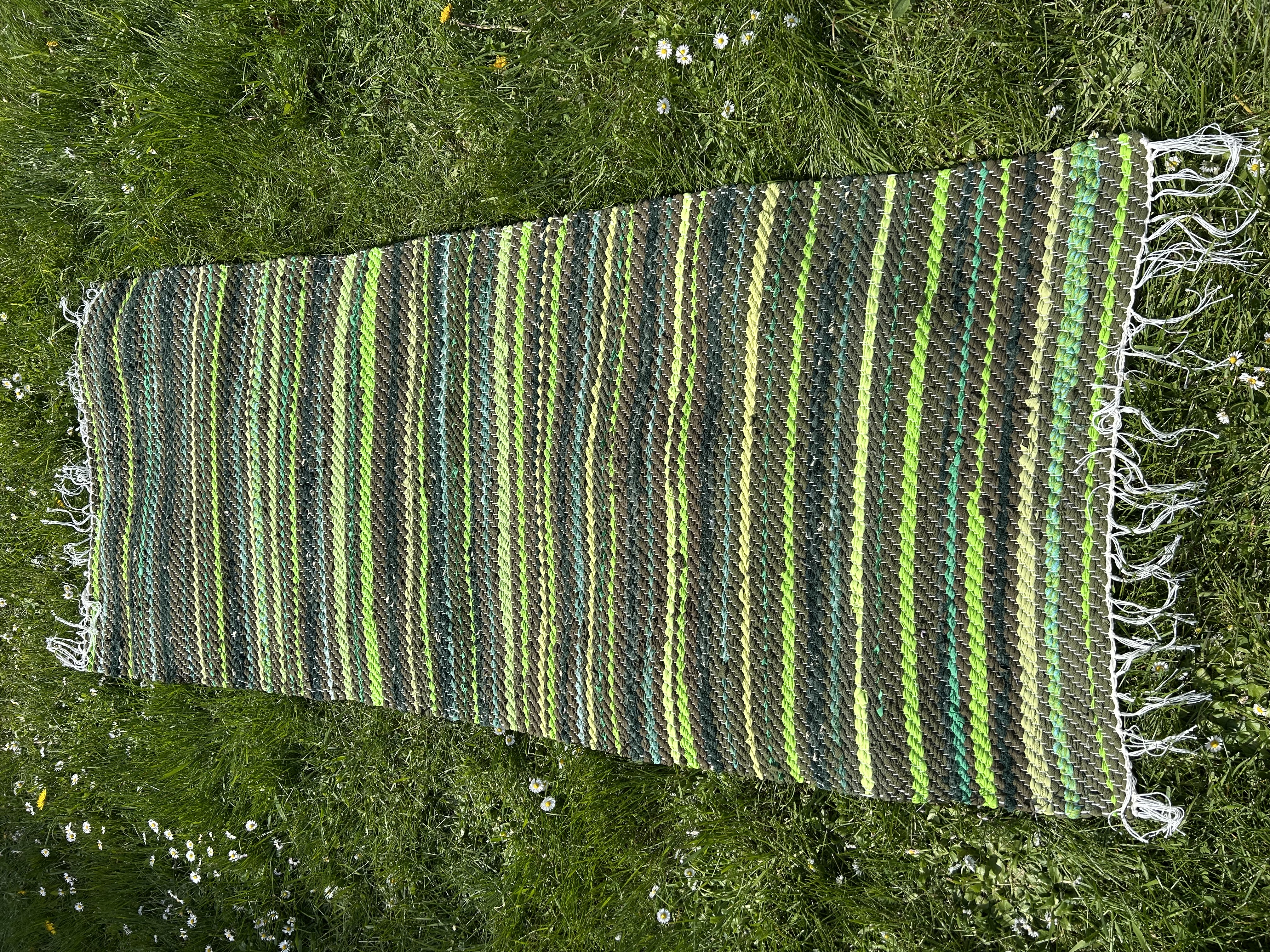 Maa-lähedastes toonides kaltsuvaip. Erinevad rohelised, alates samblikust kuni erksa laimiroheliseni, loovad metsiku ja naturaalse mustri.