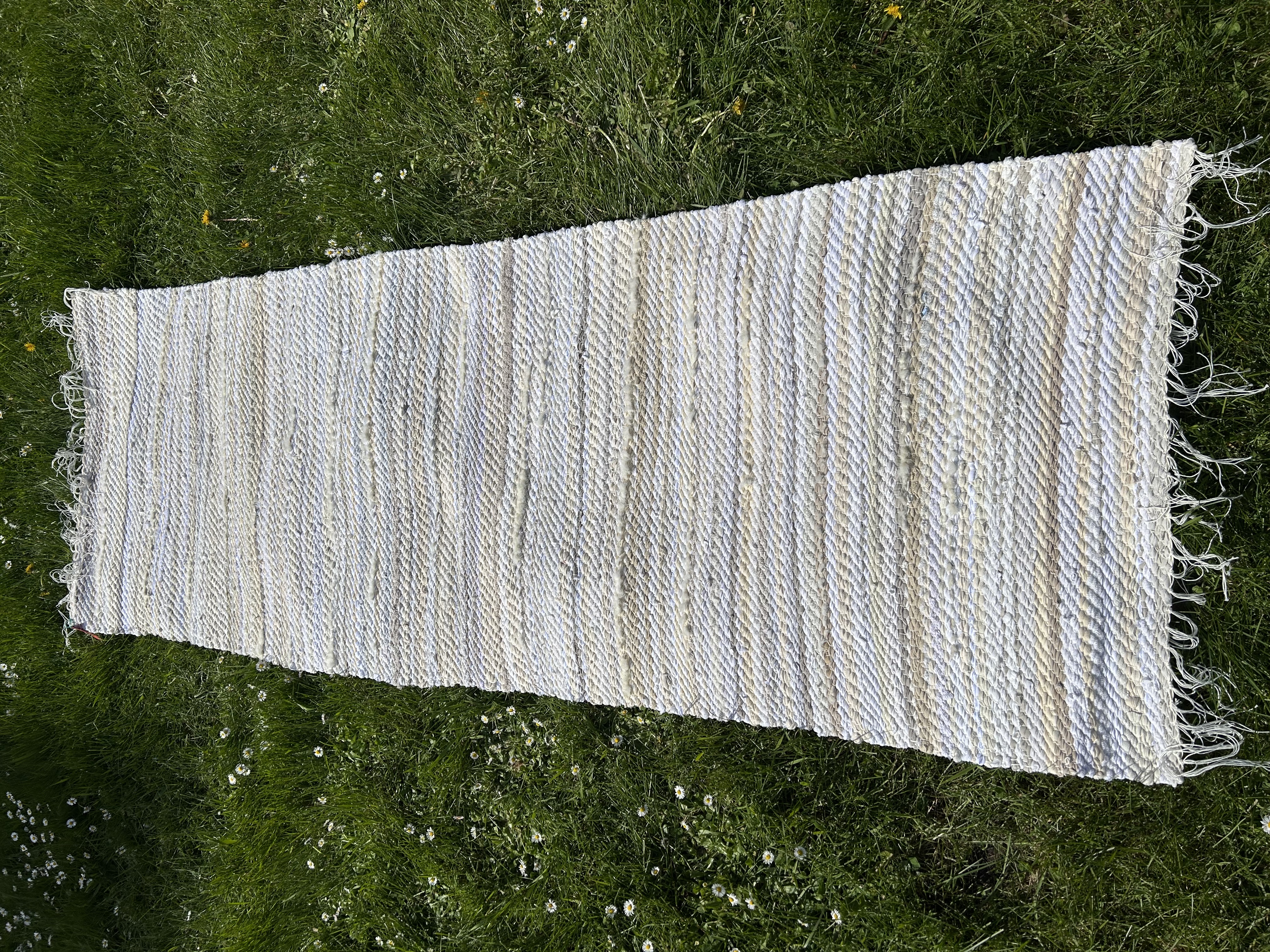 Tihedakoeline ja vastupidav kaltsuvaip helgetes toonides. Domineerivad valged, kreemikad ja õrn-beežid triibud, mis loovad puhta ja avara tunde.
